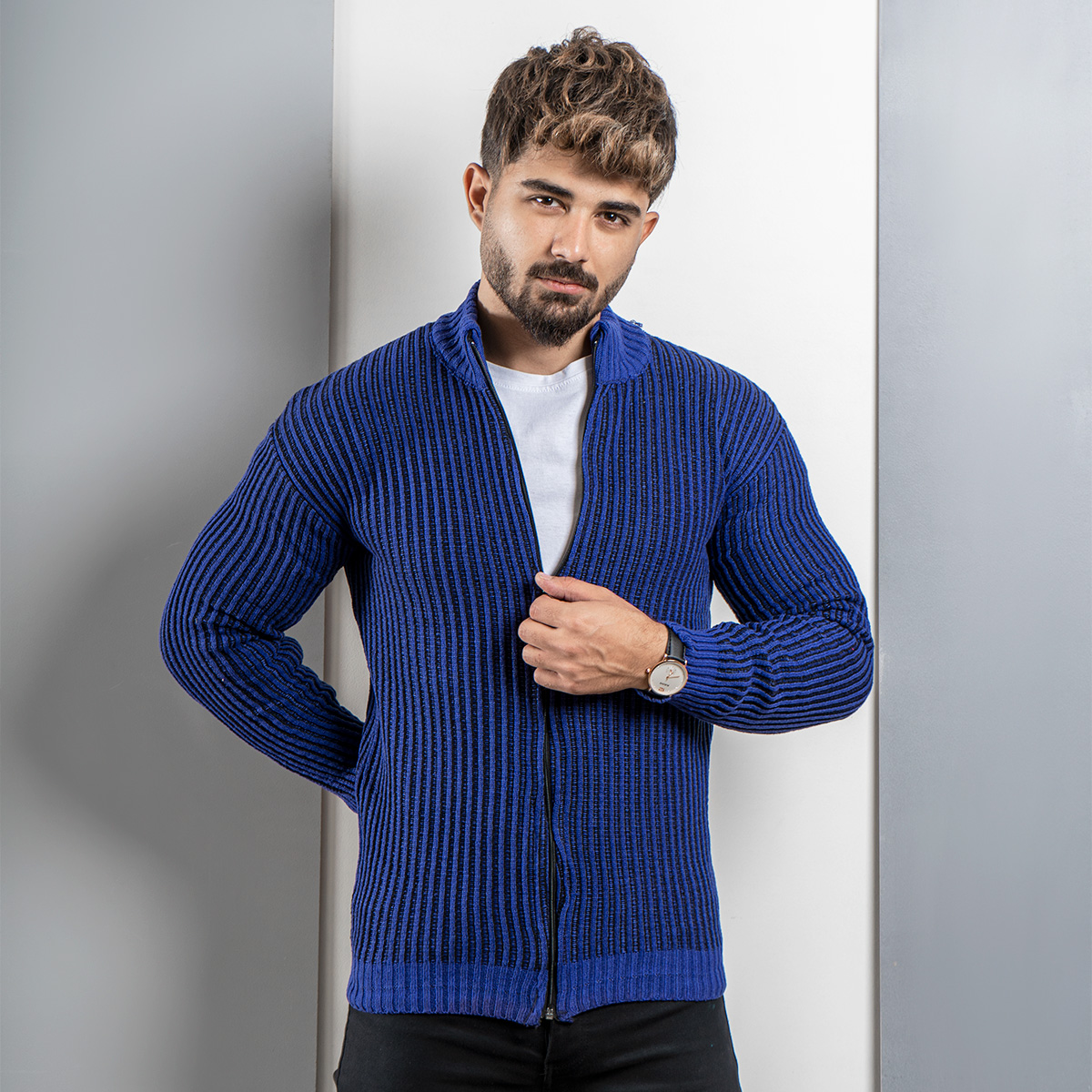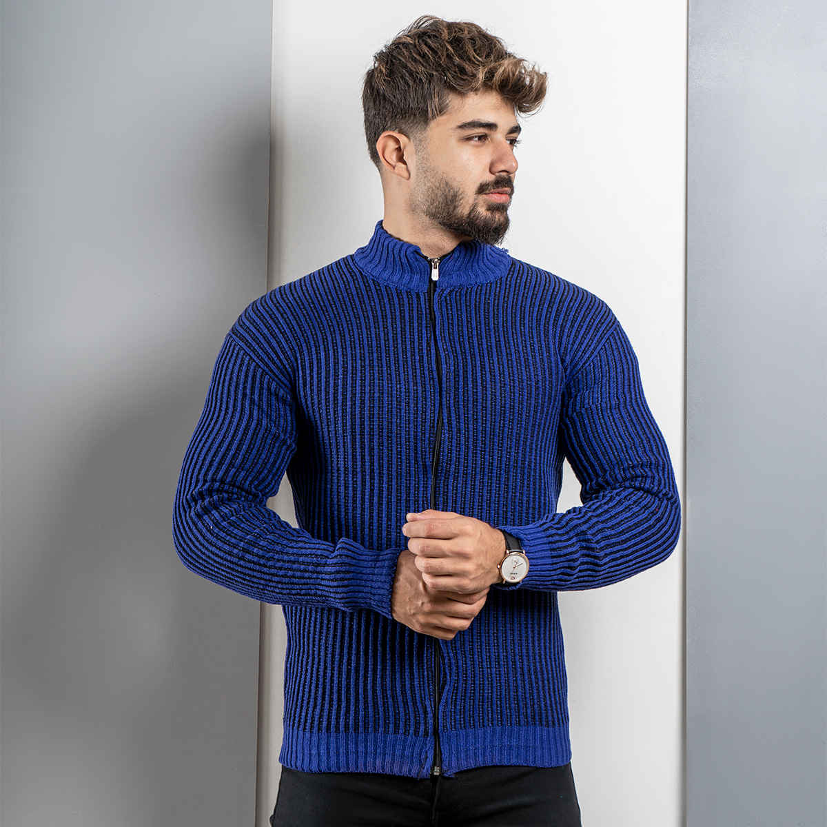 سوییشرت بافت (T)زیپ دار آبی مدلANOSH