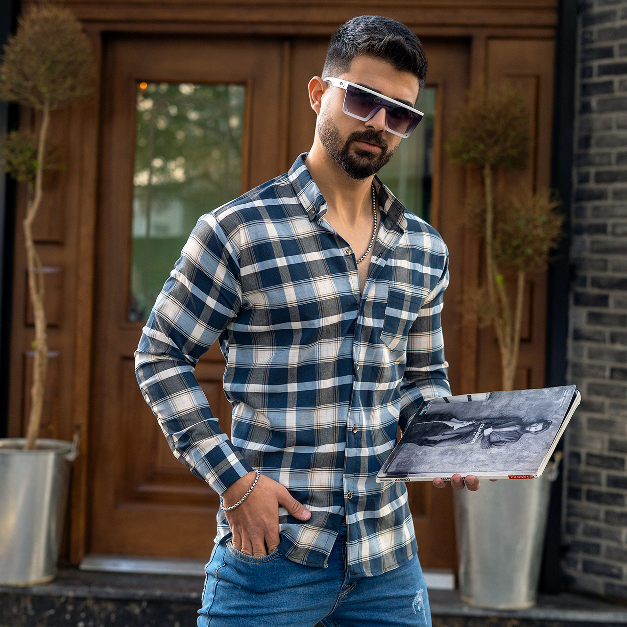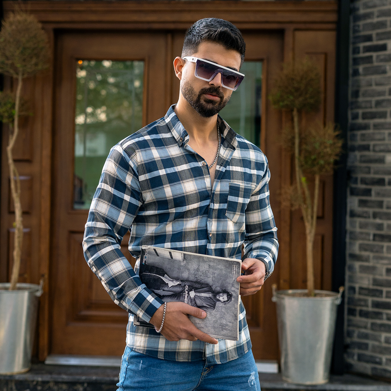پیراهن مردانه سرمه ای طوسی مدل Redi