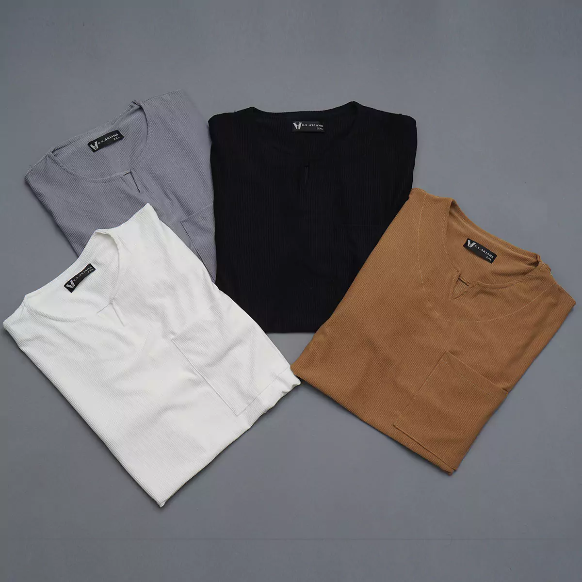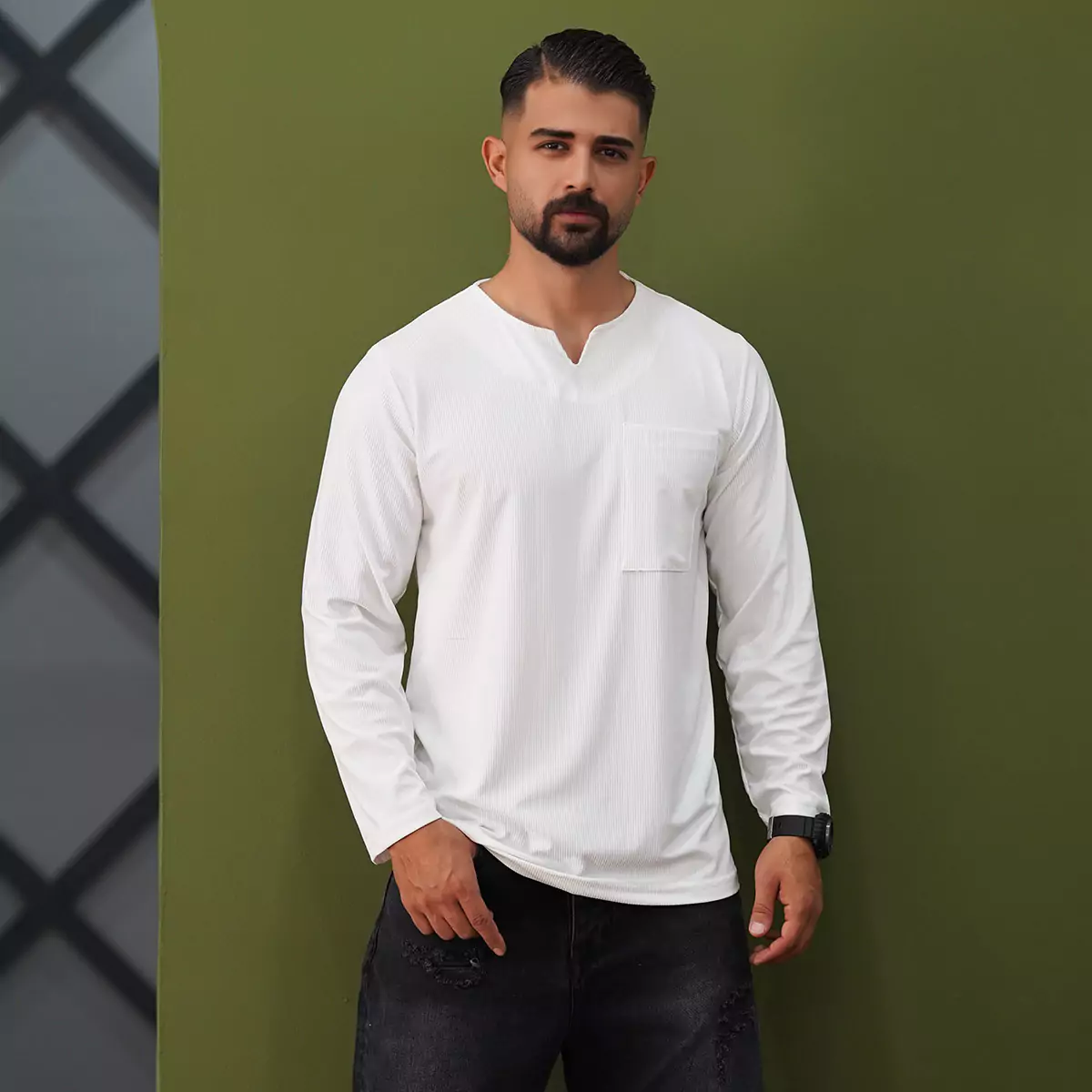 تیشرت آستین بلند یقه کوبایی سفیدمردانه مدل Asam