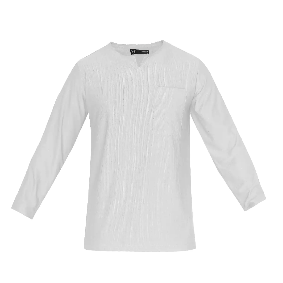 تیشرت آستین بلند یقه کوبایی سفید مردانه مدل Asam