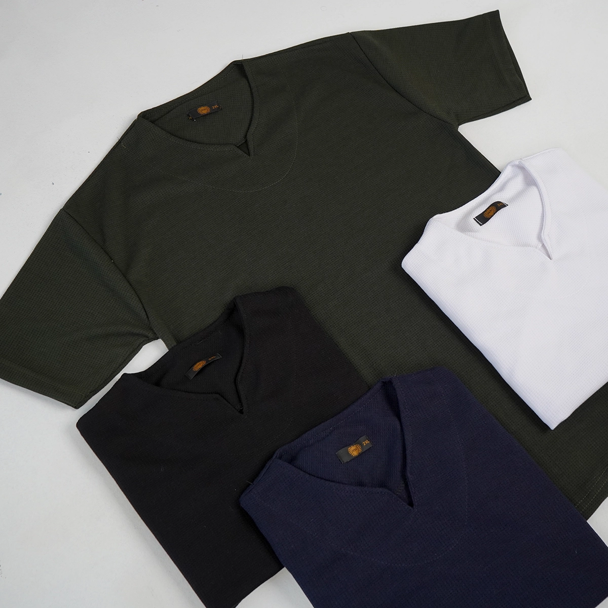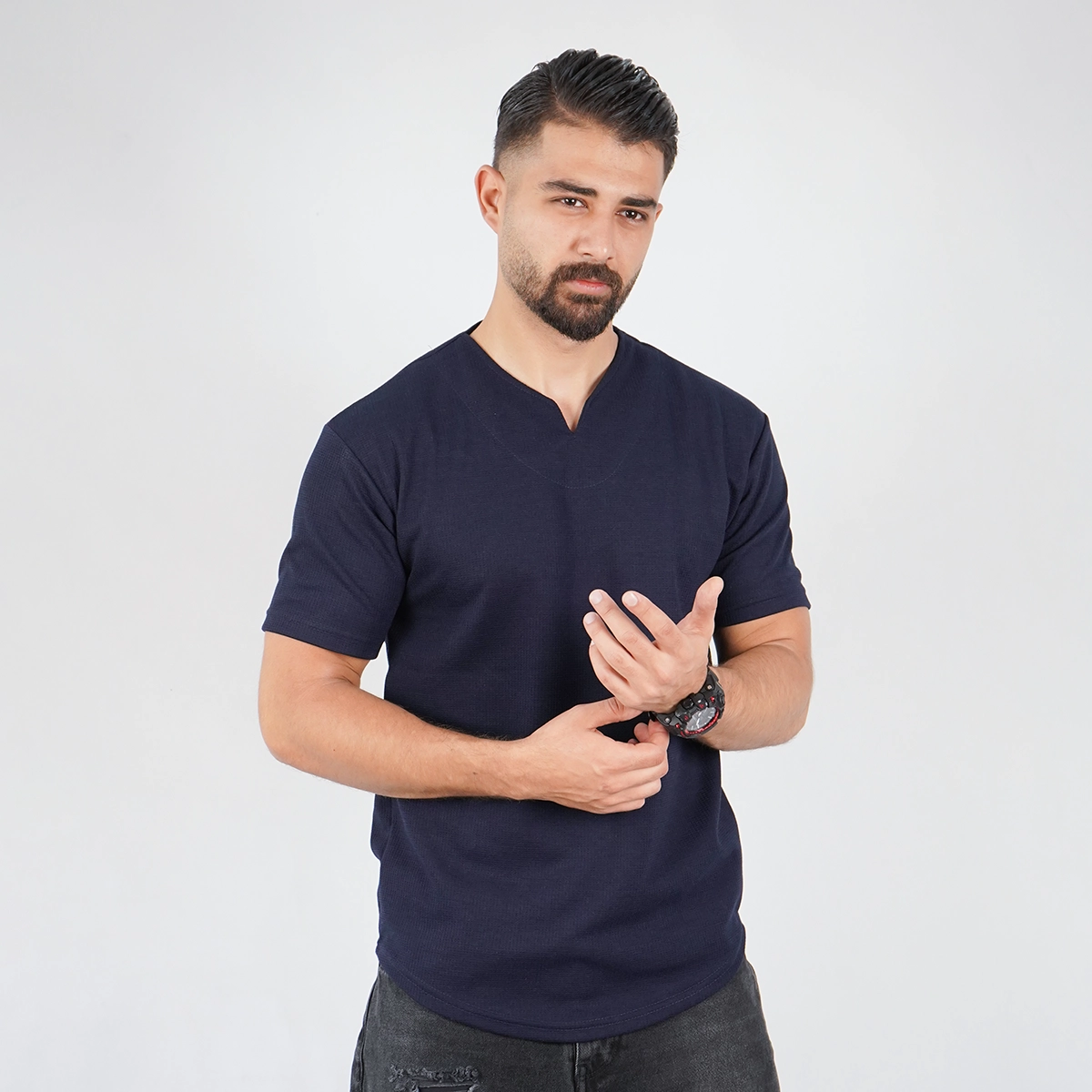 تیشرت سرمه ای یقه کوبایی مردانه مدل Sorad